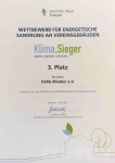 Wir haben 2017 erfolgreich am Projekt Klima.Sieger der Westfalen Weser Energie Gruppe teilgenommen. Beworben haben wir uns mit der Umstellung von unserer Direktstromheizung auf eine Luft-Luft-Wärmepumpe, in Verbindung mit einer neuen PV-Anlage mit Stromspeicher zur Eigenstromnutzung. Das hier durch unsere Mitgieder erarbeitete Konzept konnte die Fachjury überzeugen und wir haben den 3. Platz belegt.